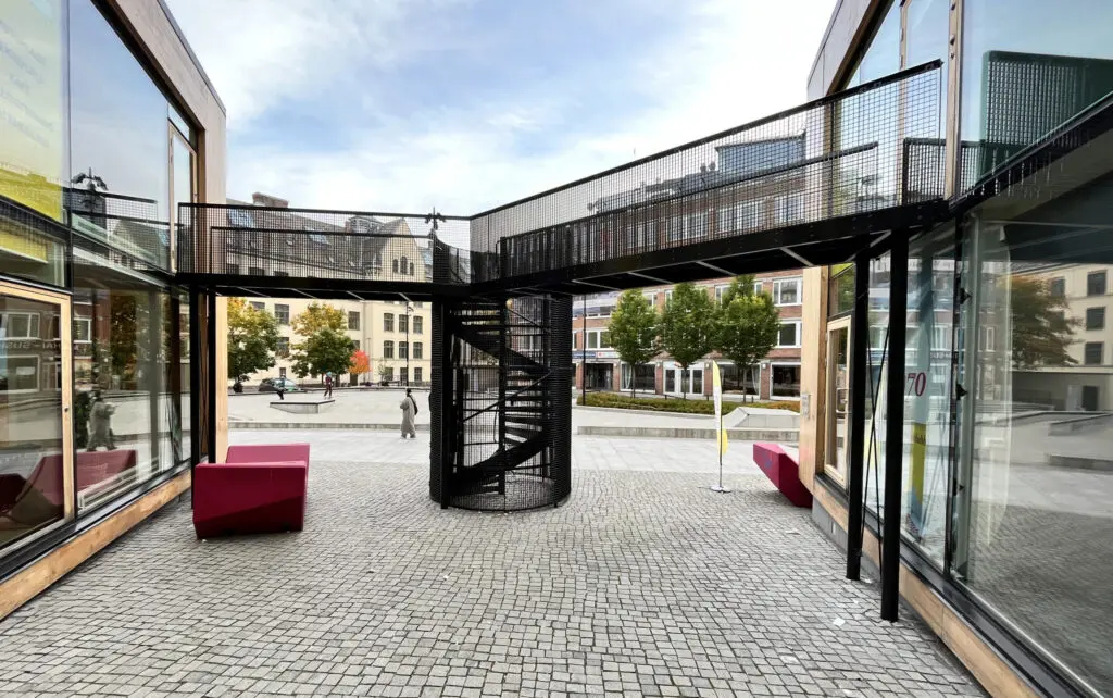 To spiraltrapper og gangbro til VM-paviljongen